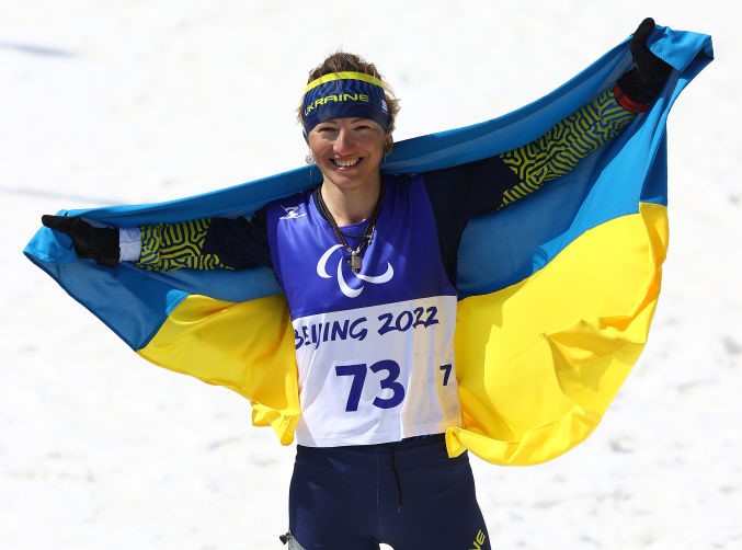 TASTE OF SUCCESS: Gold medalist Oleksandra Kononova of Ukraine celebrates her win in the Women's Middle Distance Free Technique Standing. © Michael Steele/Getty Images